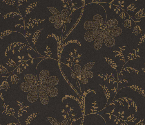 Little Greene behang Bedford Square heeft bloem motieven en in strepen geleide ranken. Het is gemaakt naar een fragment gevonden in een huis aan het sjieke Bedfordsquare. En staat voor het tijdsbeeld van eind 19de begin 20 ste eeuw.
