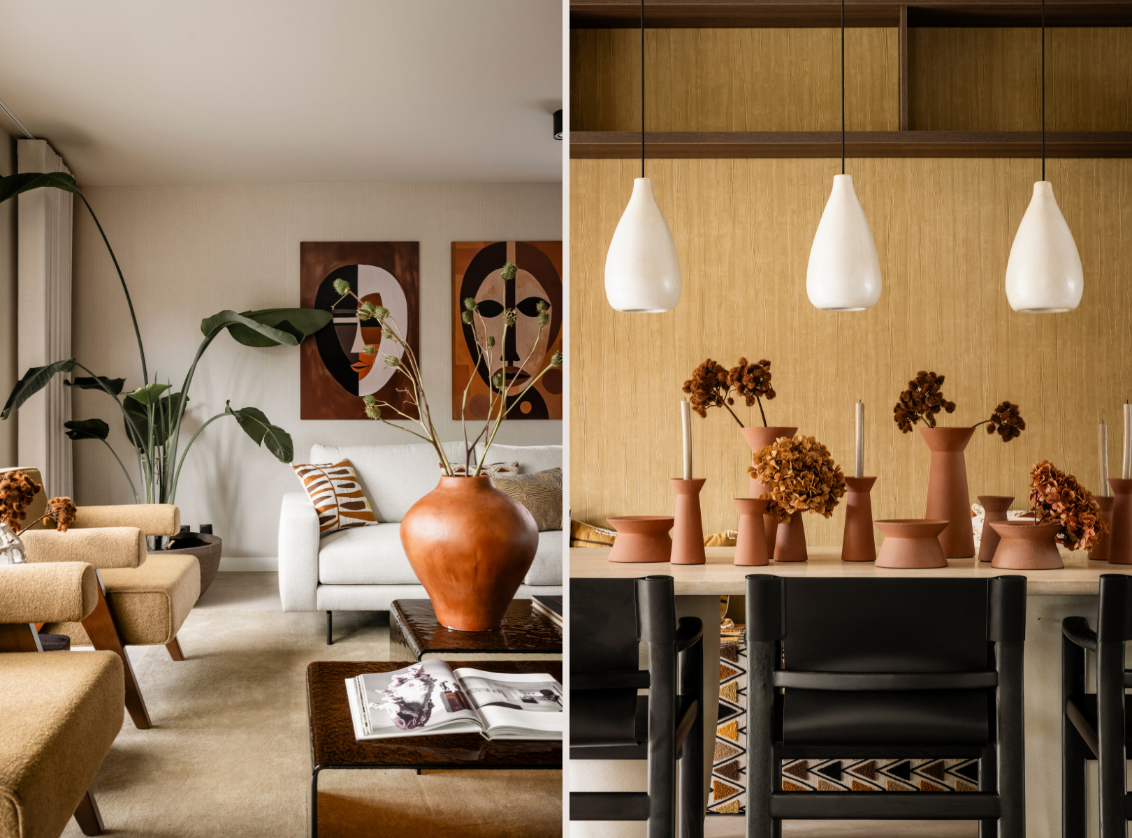 Waar Matthijs valt voor uitgesproken luxe en grote Afrikaanse elementen, verlangt Mirthe juist naar zachte tinten, Japandi invloeden en subtiele verwijzingen naar hun tijd in Afrika, waar ze woonden, reisden én trouwden.