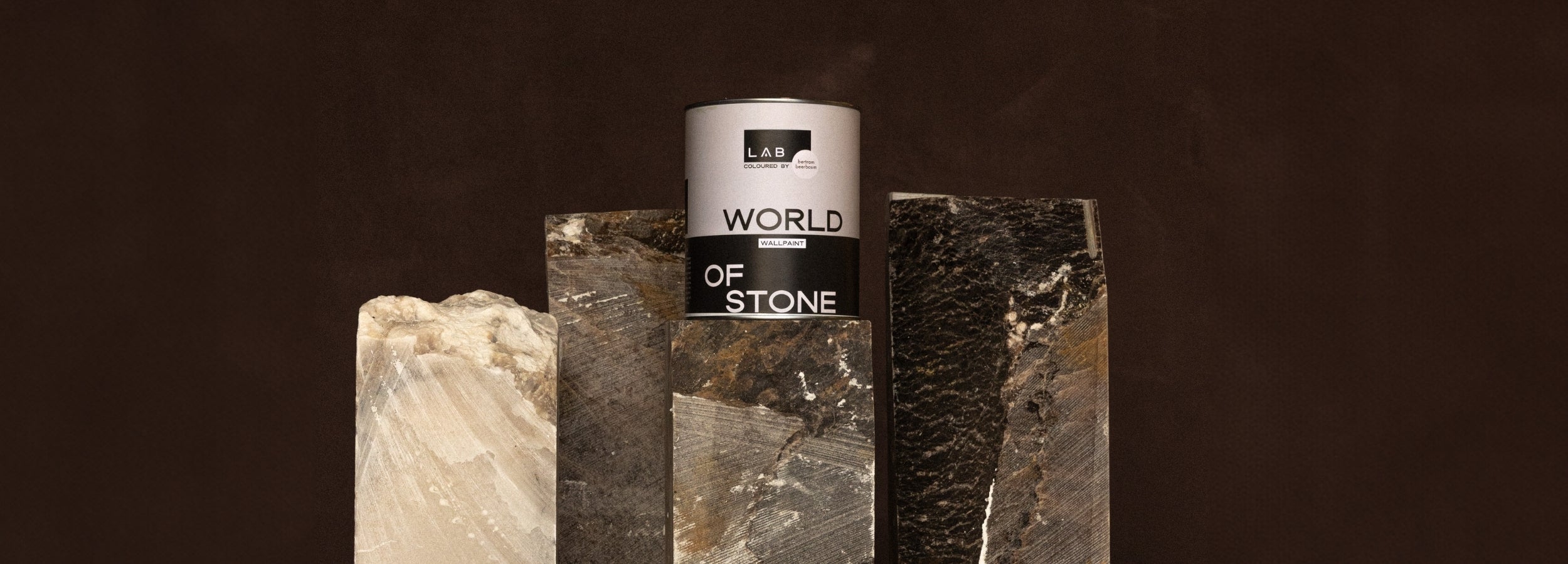World of Stone is een exclusieve verfcollectie die LAB samen met interieurontwerper Bertram Beerbaum ontwikkelde. De collectie bestaat uit 24 verfkleuren, geïnspireerd op de puurheid en gelaagdheid van natuursteen.