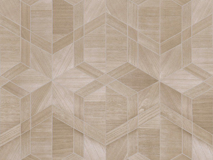 Die kubistische Tapete von ARTE besteht aus Holzfurnier. Die Tapete zeigt ein modernes Design aus geometrischen Mosaiken mit luxuriösen Metallic-Designs. Durch das Muster entsteht ein lebendiges Zusammenspiel. Eine echte Würze!