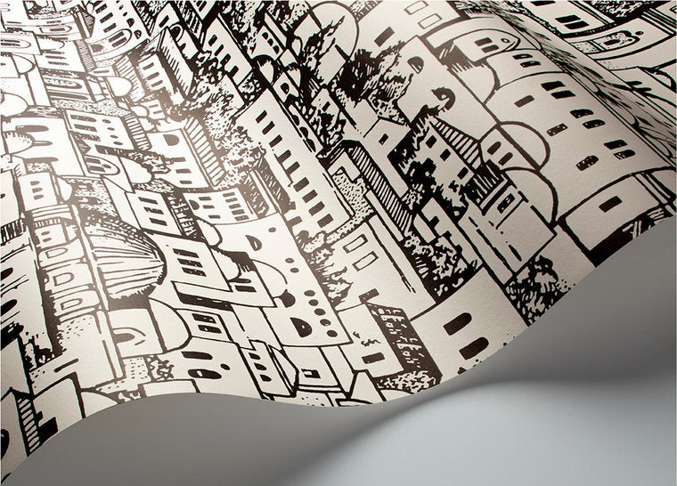 Die Fornasetti Mediterranea-Tapete hat sich zu einem echten Klassiker entwickelt und ist jetzt in einer neuen Farbpalette erhältlich. Die wunderschönen Häuser und Gebäude mit ihren Gärten sind fast hypnotisch. Piero Fornasetti entwarf die Mediterranea-Tapete für den Flur seines eigenen Hauses in Mailand. Mit dieser Tapete sind Sie also in guten Kreisen.