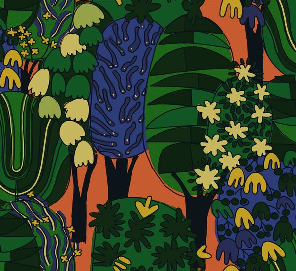 Die Brocéliande-Tapete von ÉLITIS ist aufgrund ihrer anmutigen Pflanzen, Bäume und Blumen in verschiedenen Farben ein echter Hingucker. Die Designer dieser Tapete ließen sich von idyllischen Landschaften inspirieren.