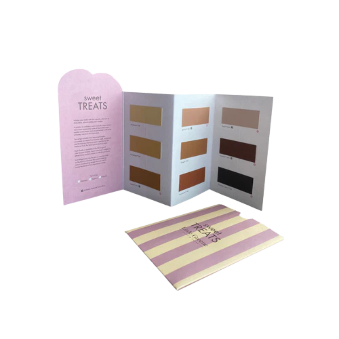 ‘Sweet Treats’ is een zorgvuldig samengestelde collectie van warme, neutrale honing-, karamel- en chocoladetinten. Elke kleur is geïnspireerd op heerlijke desserts en een aantal van ‘s werelds meest smaakvolle, zoete lekkernijen. Speelse, verrukkelijke namen, zoals ‘Madeleine’, ‘Galette’, ‘Affogato’, ‘Muscovado’ en ‘Ganache’ brengen deze verleidelijke kleuren tot leven.