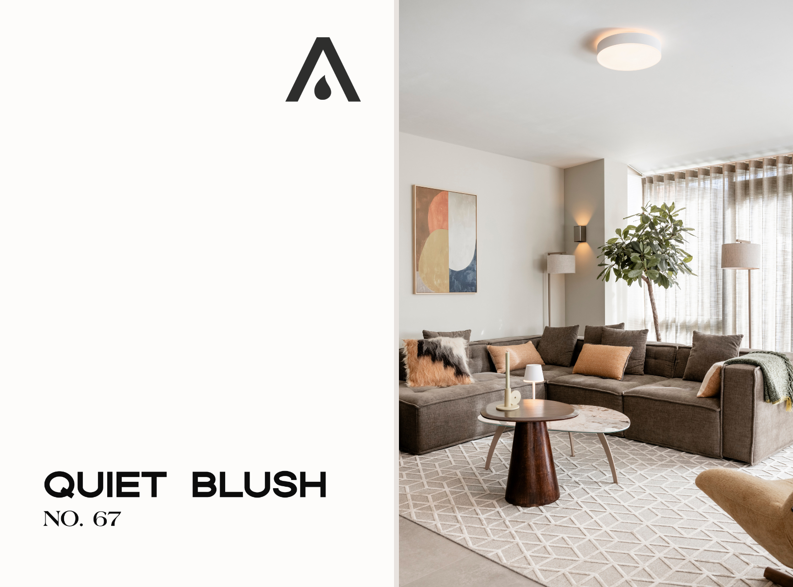 Met Quiet Blush no. 67 zet Fietje een lichte, rustige basis neer. Deze wittint heeft een warme ondertoon, waardoor hij perfect aansluit bij het kleurenpalet van de woning en prachtig samengaat met de zachte, aaibare stoffen die worden gebruikt.