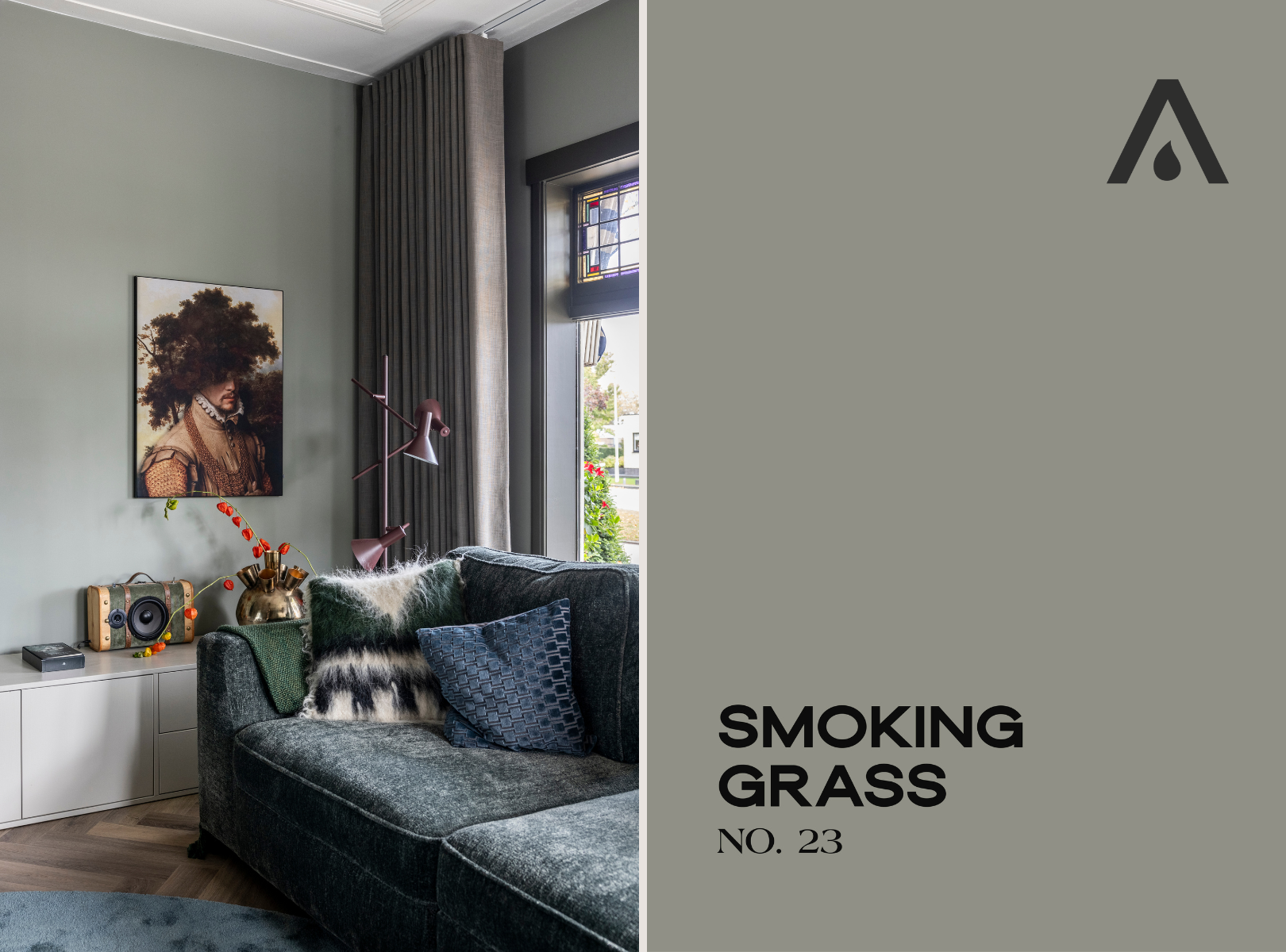 Er wordt gekozen voor Smoking Grass no. 23: een vergrijsde, rustgevende tint die meteen voor ontspanning zorgt – precies waar de bewoners naar op zoek zijn. Dankzij de subtiele blauwgloed en de grijze ondertoon laat deze kleur zich moeiteloos combineren met verschillende stijlen.