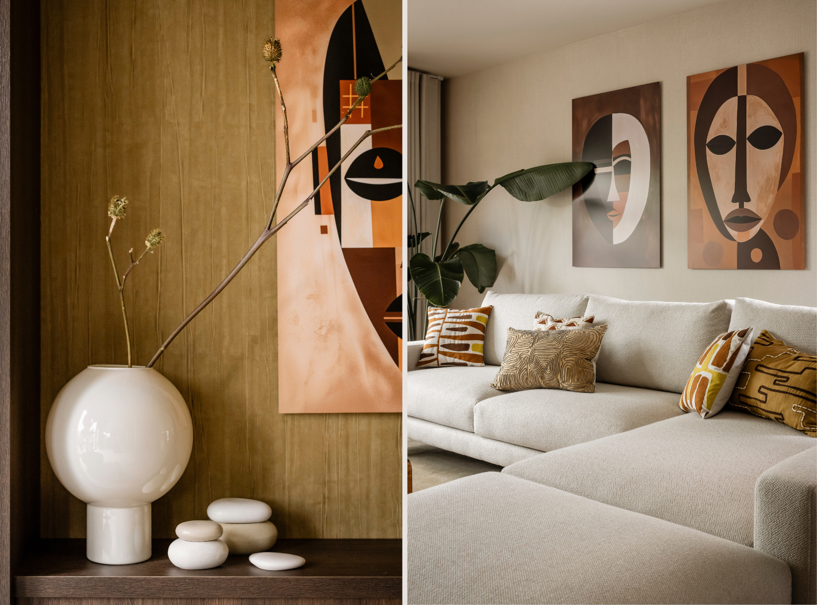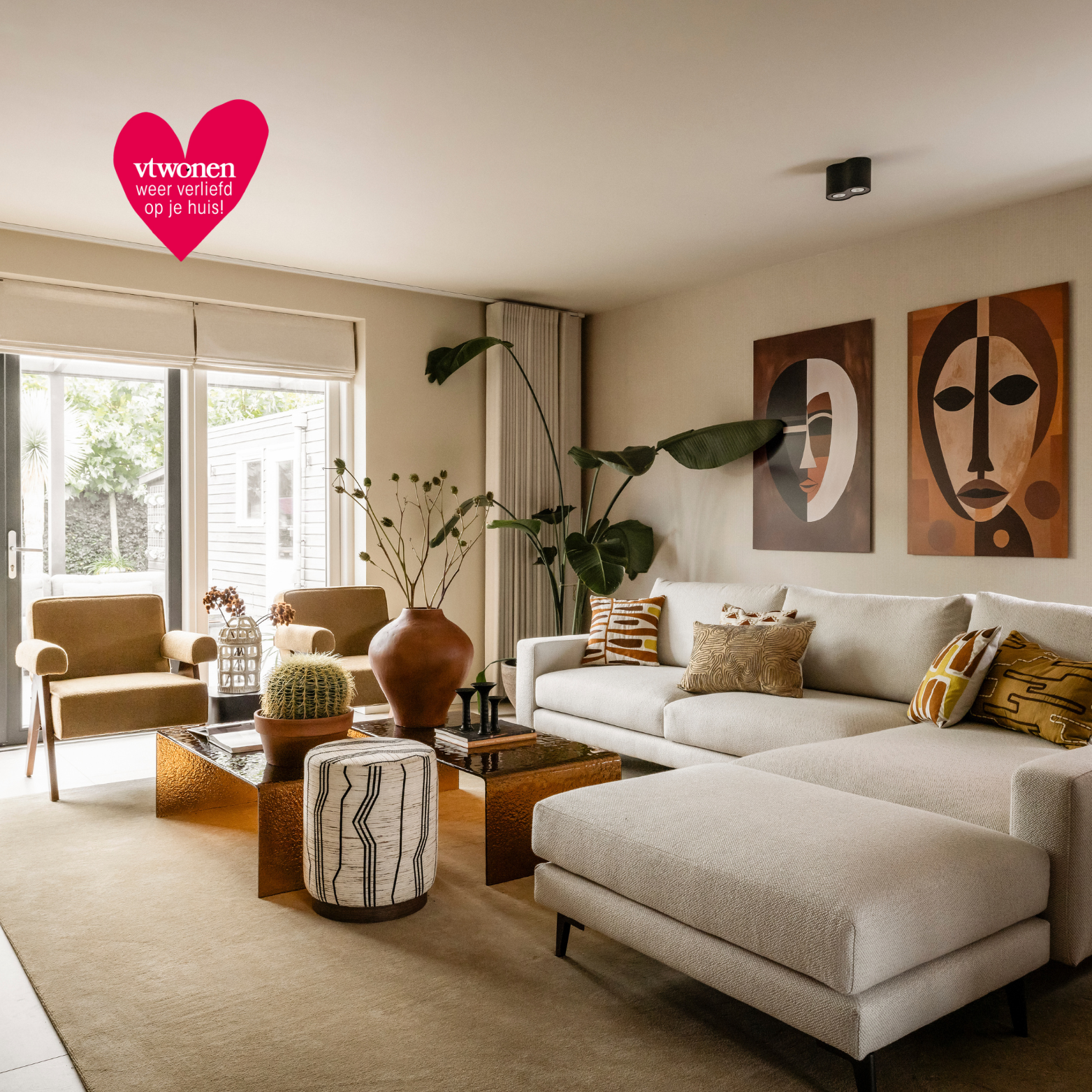 Waar Matthijs valt voor uitgesproken luxe en grote Afrikaanse elementen, verlangt Mirthe juist naar zachte tinten, Japandi invloeden en subtiele verwijzingen naar hun tijd in Afrika, waar ze woonden, reisden én trouwden.