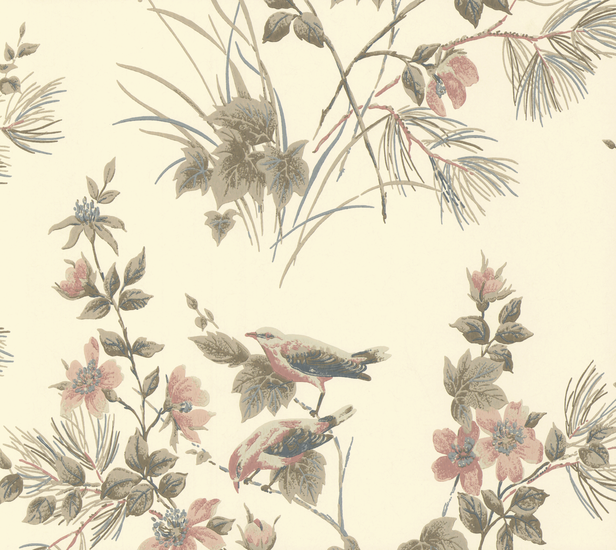 Discover the Rosemore wallpaper collection by 1838 Wallcoverings wallpaper. An elegant and timeless collection inspired by the English country life. Enjoy special leaf motifs, grasses and branches with birds, damask patterns and even a bark motif.