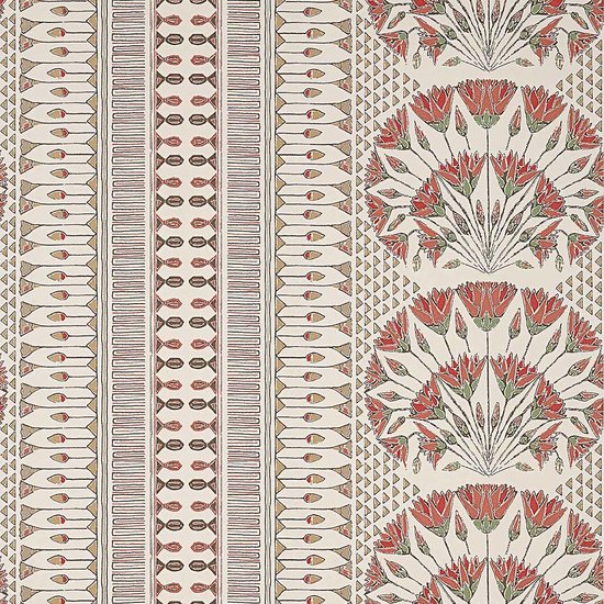 Influenced by the modern elegance of the 1920s, Savoy is an exuberant collection of coordinating prints, fabrics and wallcoverings that deftly combines the graphic geometry of Art Deco with exotic plants and organic elements such as winding garden paths and flowering bouquets. The collection includes charming small-scale motifs of trees, scallops and blowing flowers, as well as dramatic geometry and blooming lotus and iris flowers in colourways inspired by the original document artwork.
