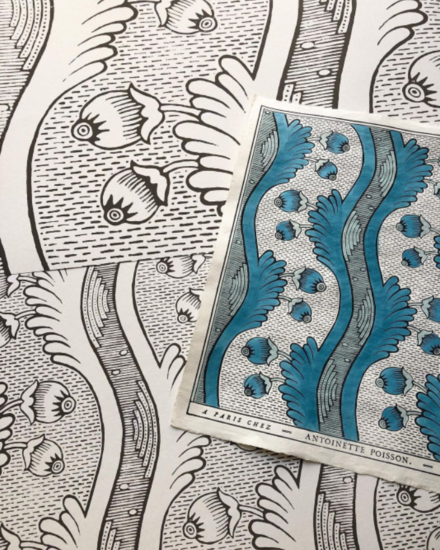 A Paris chez Antoinette Poisson is a French brand founded by Vincent Farelly and Jean-Baptiste Martin, both heritage restorers specializing in wallpaper. Since 2012, they have revived the knowledge of the old technique of domino paper with their brand, bringing back the charm of intimate 18th century interiors.