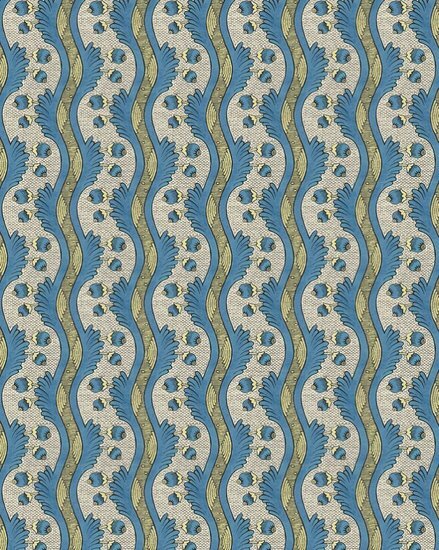 Antoinette Poisson Grenades wallpaper is based on a historical pattern of domino paper from Les Associés. The royal colours yellow and blue in combination with the motif gives the wallpaper a royal touch.