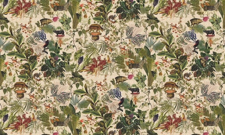 The Menagerie of Extinct Animals wallpaper has a soft textile structure and the pattern is digitally printed.