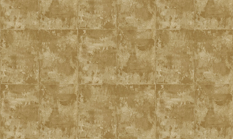 ARTE Platinum wallpaper Warm Gold has a weathered look, as if it is made of aged platinum plates. In addition, the block pattern gives an effect of tiles on the wall. This sturdy wallpaper is beautiful to place in, for example, a bathroom or kitchen. The combination of matt and gloss gives this eye-catcher a warm metallic look!