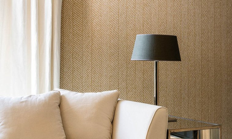 Thanks to its balanced pattern, Flamant wallpaper Costume is a real graphic eye-catcher. The herringbone pattern, with a touch of vintage, brings a lively atmosphere into the house. If you want rhythmic peace, it is best to choose the soft colour gradation in beige and grey. If you want something a little more dynamic, go for dark blue or mustard yellow.