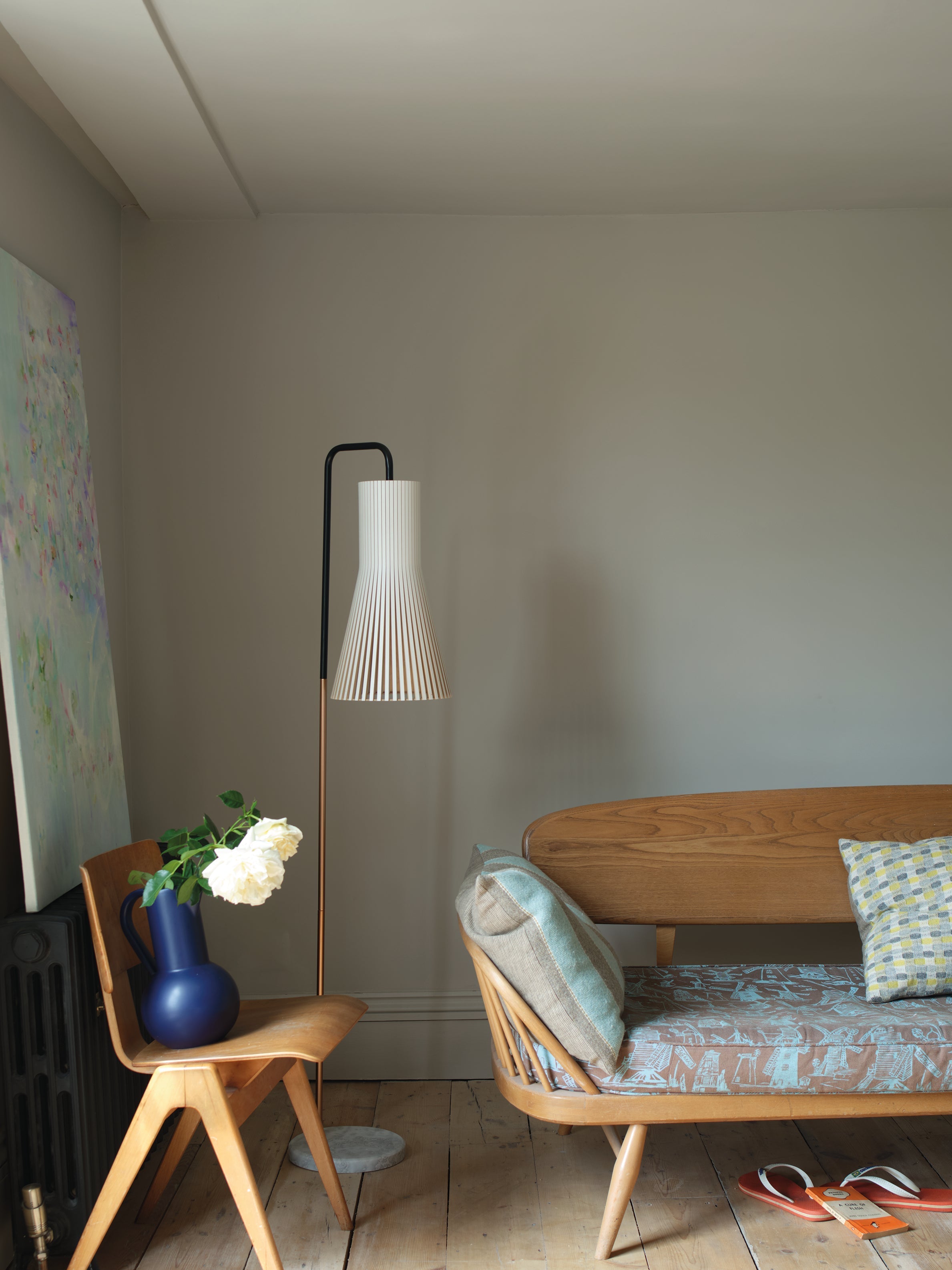 Ash Grey no. W9 has a relaxing feel that will suit any space, especially when combined with the slightly warmer Skimmed Milk White no. W7 on woodwork. Try combining with a lighter edge of Snow White no. W1 for a more contemporary feel. The underlying green in this shade means it will appear more intensely coloured in natural daylight and greyer in low light areas. Use a base coat in Mid Tones.