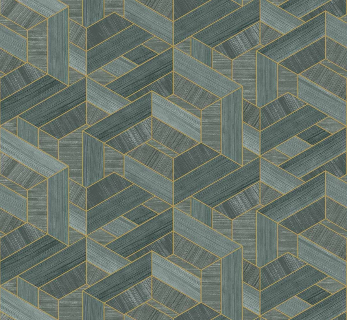 Coordonné Woodcraft Hexagon Lagoon behang A00449
