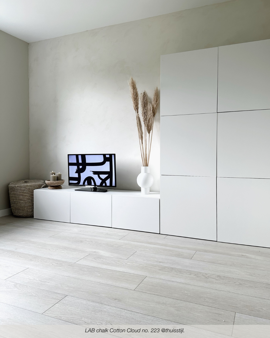 LAB Chalk is a durable, matt lime paint for indoor use. With LAB Chalk you can apply beautiful colour shades in a LAB COLOUR of your choice to the wall. Lime paint can be applied in various ways with a block brush, sponge or cloth. For a cloudy effect, paint the wall in circular movements with a block brush, sponge or cloth. Prefer a random pattern? Then apply LAB Chalk criss-cross with a block brush. If you want a streaky effect as an end result, also use a block brush. In this case, apply the lime paint irregularly in a vertical direction from ceiling to skirting board. Everyone has their own unique signature. So you can really put your own spin on it with a unique end result.