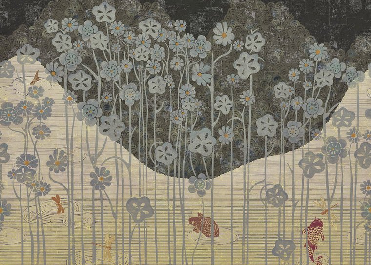 The ÉLITIS Soleil Levant wallpaper collection includes beautiful panoramic wallpapers, as well as rolls of wallpaper that can be ordered separately. The designs are inspired by the hand-painted designs from Japan and Korea. For example, with cherry branches and blossom, fish in the water, butterflies, as well as more ethnic designs.