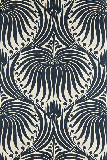 The Farrow and Ball Lotus wallpaper comes from a French archive and is influenced by the Arts & Crafts movement of that time. A timeless classic with a beautiful lotus leaf.
