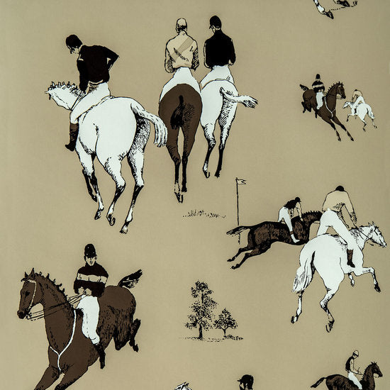 The Hipodromo wallpaper has a pattern of different riders on horseback.
