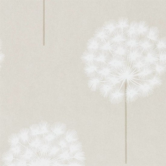 Amity Harlequin Wallpaper from the Paloma wallpaper collection shows a design of dandelions in contrast with a textured background with a metallic sheen. This wallpaper gives something dreamy and elegant to your interior. A large-scale and simplistic design that is sure to catch your attention.