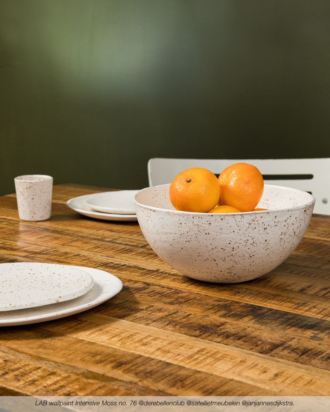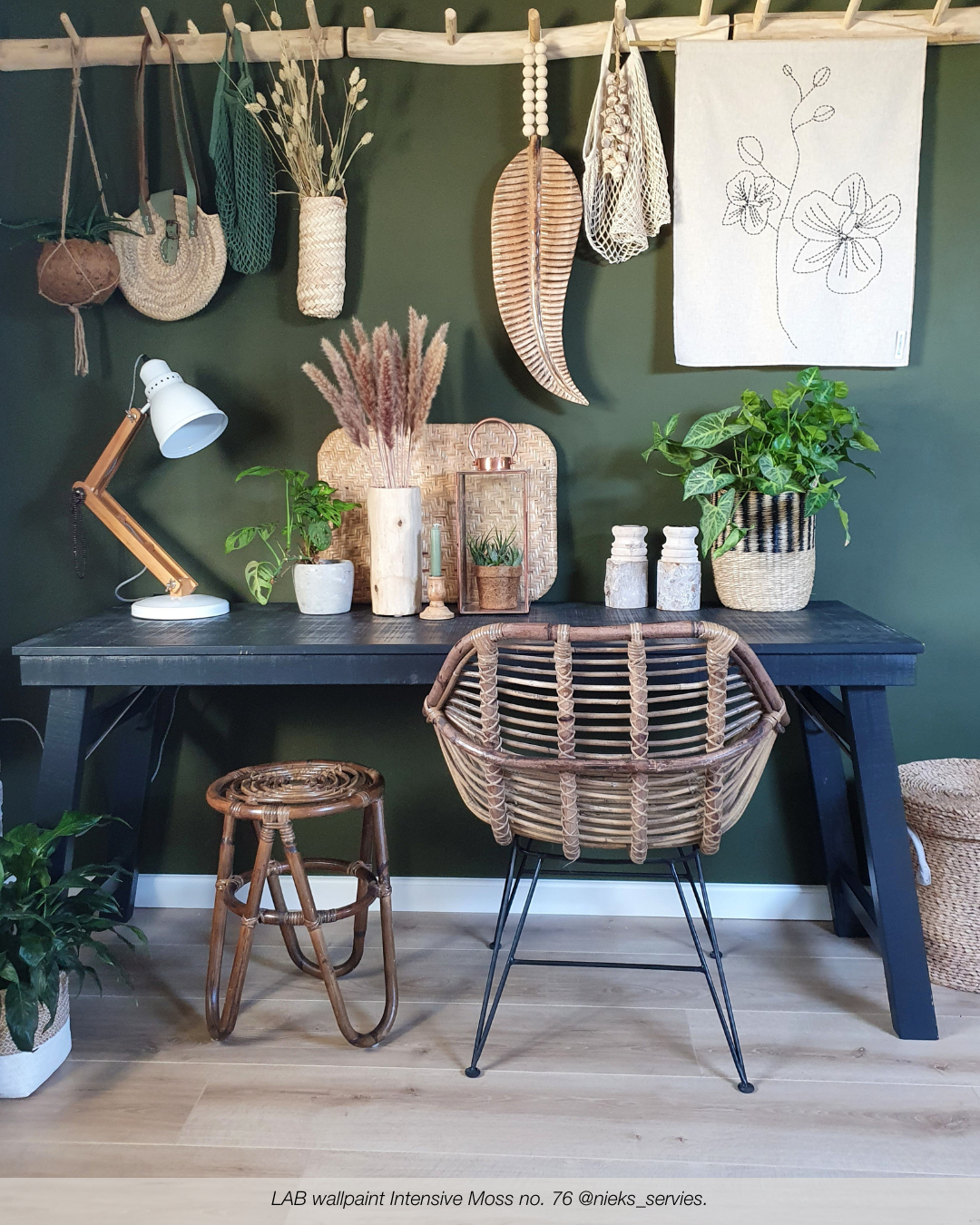 LAB Chalk is a durable, matt lime paint for indoor use. With LAB Chalk you can apply beautiful colour shades in a LAB COLOUR of your choice to the wall. Lime paint can be applied in various ways with a block brush, sponge or cloth. For a cloudy effect, paint the wall in circular movements with a block brush, sponge or cloth. Prefer a random pattern? Then apply LAB Chalk criss-cross with a block brush. If you want a streaky effect as an end result, also use a block brush. In this case, apply the lime paint irregularly in a vertical direction from ceiling to skirting board. Everyone has their own unique signature. So you can really put your own spin on it with a unique end result.