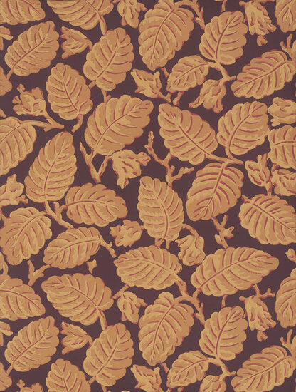The Little Greene Beech Nut Córdoba Wallpaper has an authentic, late Georgian design. The original wallpaper was discovered at Oxburgh Hall in Norfolk. The original design featured a brightly colored flocked floral border, but the leaf and nut were printed in blocks in a more subdued gray color. While the six contemporary interpretations are unashamedly more colorful, each uses a similarly balanced color palette alongside the distinctive, artisanal texture of a surface-printed paper.