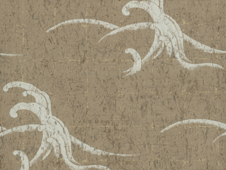 Nobilis Kanagawa wallpaper shows a beautiful design of the well-known cork wallpaper by Nobilis, but in an oriental jacket. The wallpaper is decorated with large bright waves inspired by Japanese prints. The metallic details provide extra depth, creating an exciting whole. This wallpaper is a tribute to the textile dyes of Japan and is available in various color schemes.