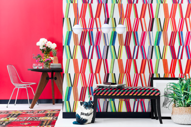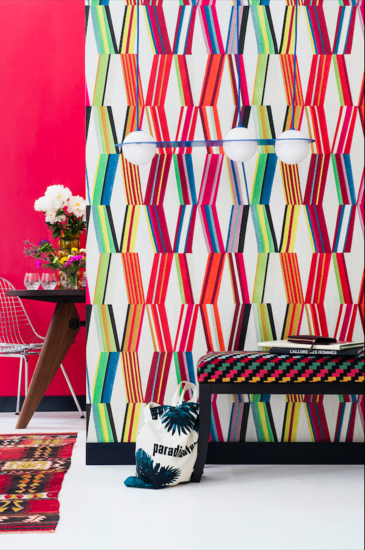 The Pierre Frey Carriacou wallpaper is a feast for the eyes with its multicoloured diamond shapes in kaleidoscopic style. This beautiful design represents a constantly renewed interplay of shapes and colours. An extra wide print with surprising colours.