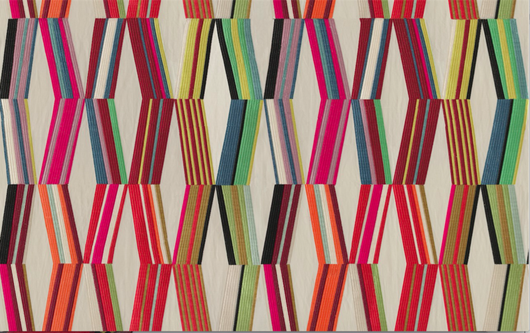Pierre Frey Carriacou wallpaper is a real eye-catcher with its multicolored diamond shapes in kaleidoscopic style. This beautiful design represents a constantly renewed interplay of shapes and colors. An extra wide print with surprising colors.
