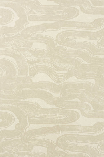 The Pierre Frey Nuages wallpaper features curves and brushstrokes revealing a contemporary reverie. The design is printed on embossed vinyl with the look of paper and has an iridescent finish.