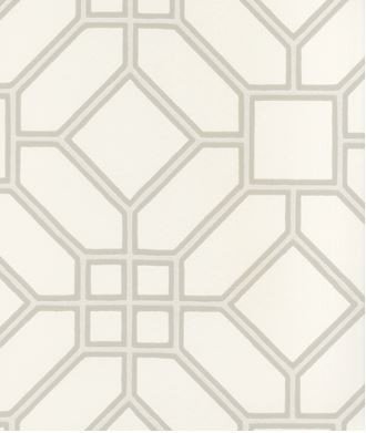 The Zoffany Veranda Trellis wallpaper has a geometric pattern, originating from the early 20th century. Collection: Zoffany Woodville wallpaper