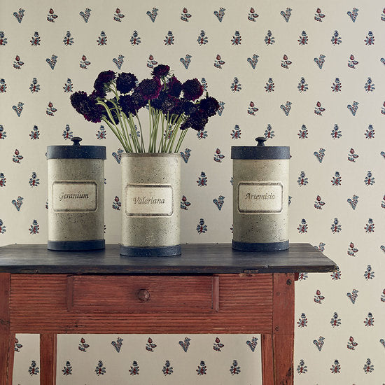 Manor Behang van de Anna French Collectie toont een kleinschalig bloemmotief, met stekelige bladeren en distelachtige bloemen. Vraag gerust een staaltje als u zeker wilt zijn over de kleur om een perfecte kleurmatch te maken.