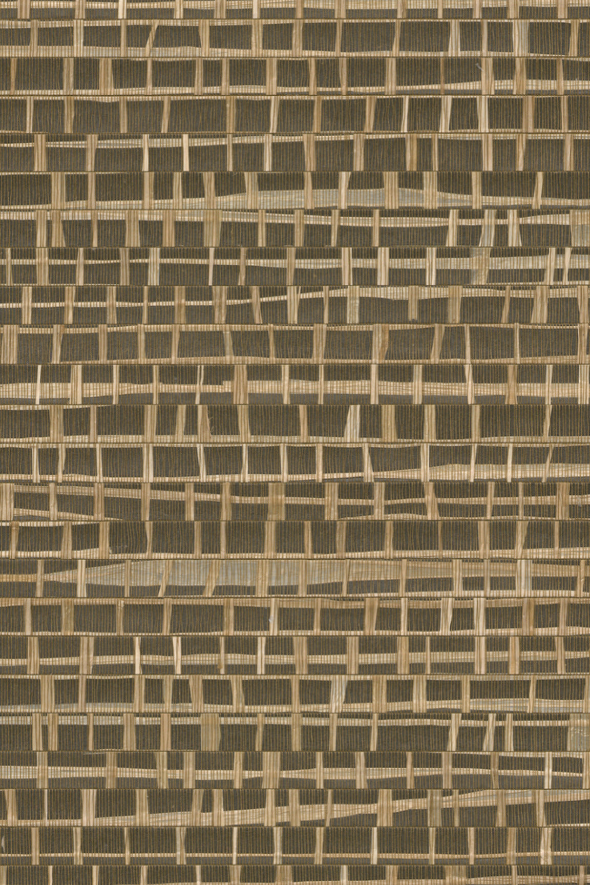 Het dessin Ruban speelt met diktes. Smalle raffiastroken worden met de hand gekleefd op vlies, wat op zijn beurt tot bredere stroken versneden wordt. Deze strips worden tot een geheel geweven met een ultrafijn draadje. Een geslaagd samenspel van smal en breed.