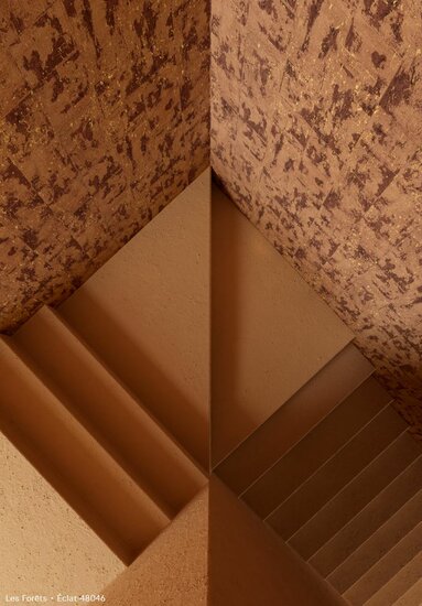 Éclat – Frans voor glans – toont een groot blokkenpatroon. Een fijn laagje echte kurk geeft dit dessin een stoere look. Die wordt verzacht door de subtiele glans die hier en daar door de kurk heen straalt.