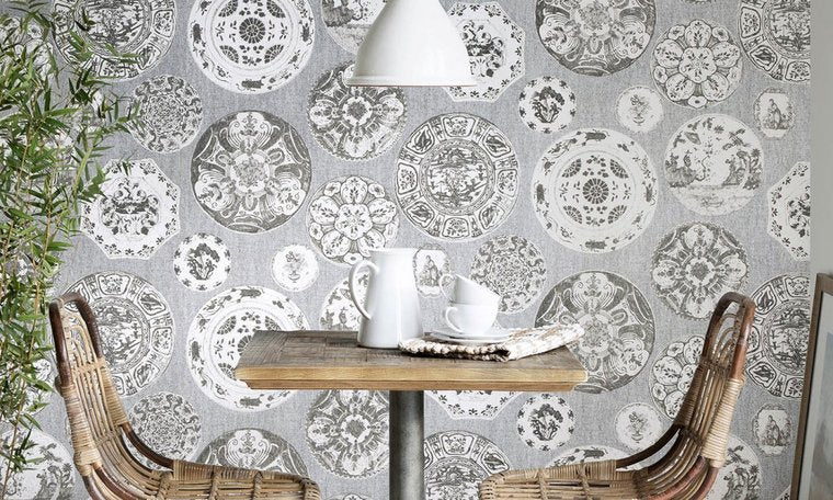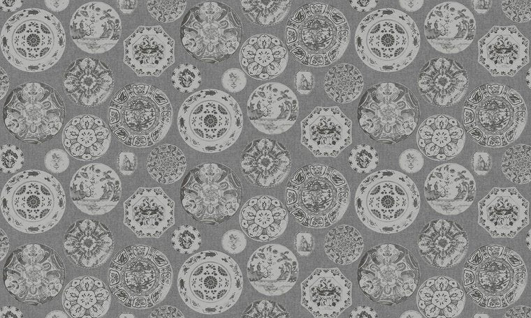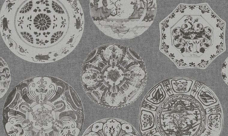 Céramique brengt een ode aan traditie en stelt een collage van keramische borden voor. De fijne details en uiteenlopende tekeningen scheppen samen een intrigerend en ietwat vintage tafereel.