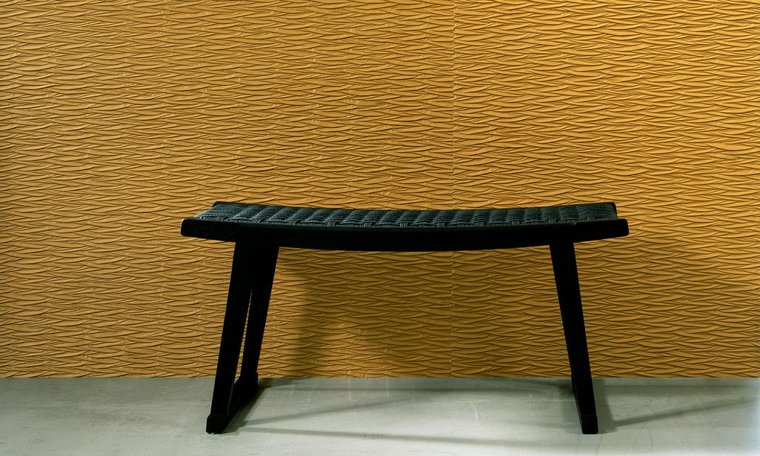 De imitatie van gevouwen papier weerspiegelt de rimpeling van bewegend water. De plooien creëren veel reliëf en het repetitieve karakter brengt rust en regelmaat. De luxueuze afwerking van de toplaag is een inkt van zijdeglans met een elegante zijdelook als resultaat.