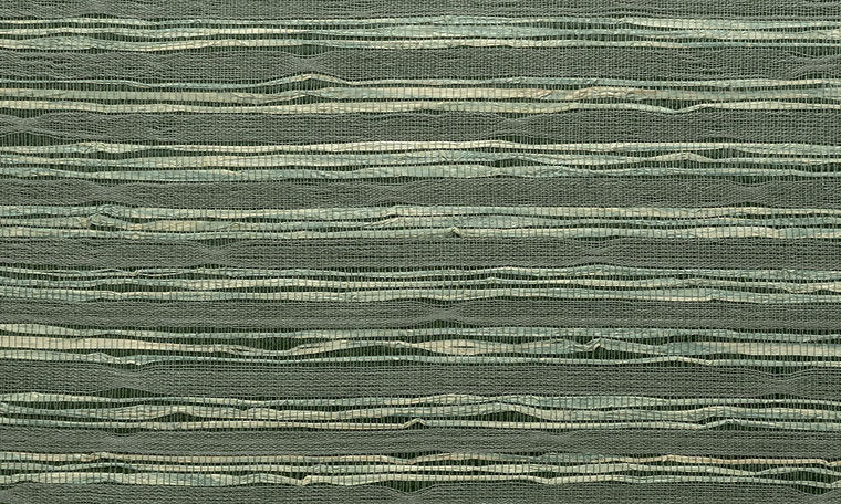 Een combinatie van raffia en ruwe draad, onregelmatig ingeweven om het natuurlijke karakter extra in de verf te zetten. Beide matte materialen contrasteren mooi met de metaalkleurige of gelakte ondergrond.