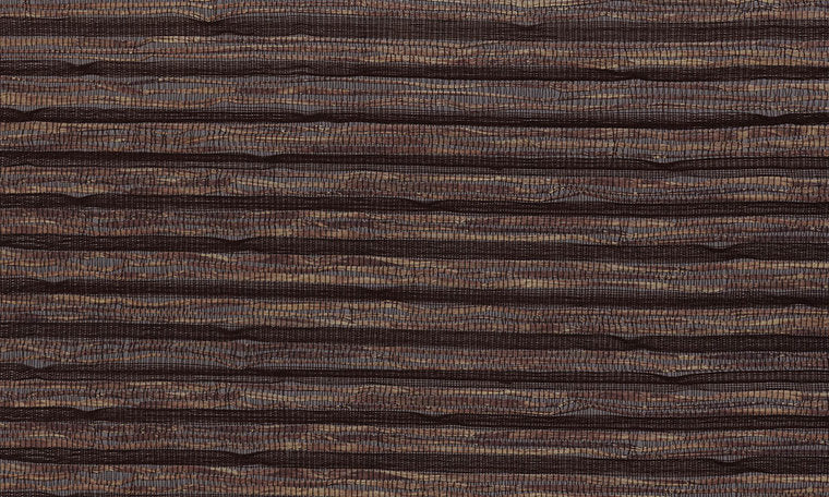 Een combinatie van raffia en ruwe draad, onregelmatig ingeweven om het natuurlijke karakter extra in de verf te zetten. Beide matte materialen contrasteren mooi met de metaalkleurige of gelakte ondergrond.