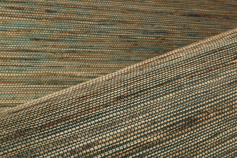 Dit dessin is gemaakt van hennepvezels waarvan de natuurlijke kleuren contrasteren met de zwarte, fijne garens die de vezels aan elkaar rijgen. De onregelmatige draden van verschillende diktes en knoopjes zijn duidelijk zichtbaar en maken Sambe authentiek en puur.