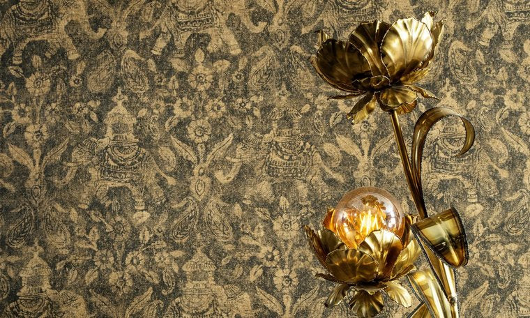 Tijdloos behang met een vintage toets en een glamoureuze twist, geïnspireerd op natuurlijke materialen.