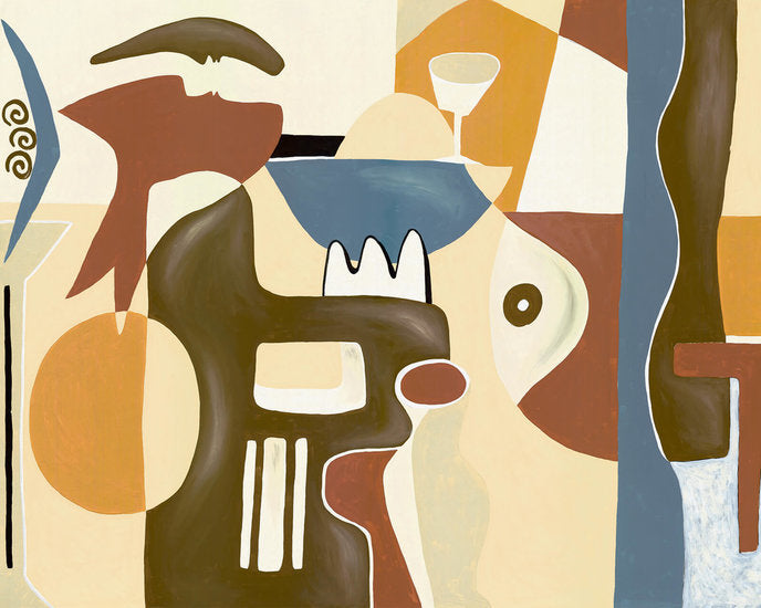 Asteré L'ivresse behang bestaat uit verschillende artistieke vormen. Bij het Asteré L'ivresse paneelbehang lijkt het alsof je naar een echt doek kijkt. Hoe dichtbij je ook komt, de penseelstreken voelen intact en de verf is nog steeds aanwezig. Op de een of andere manier verdwijnt het behang om plaats te maken voor een muurschildering, vol referenties. Je kunt er Le Corbusier, Perriand, Arp, Prouvé en andere pioniers van het organische, surrealistische of abstracte modernisme tegenkomen.
