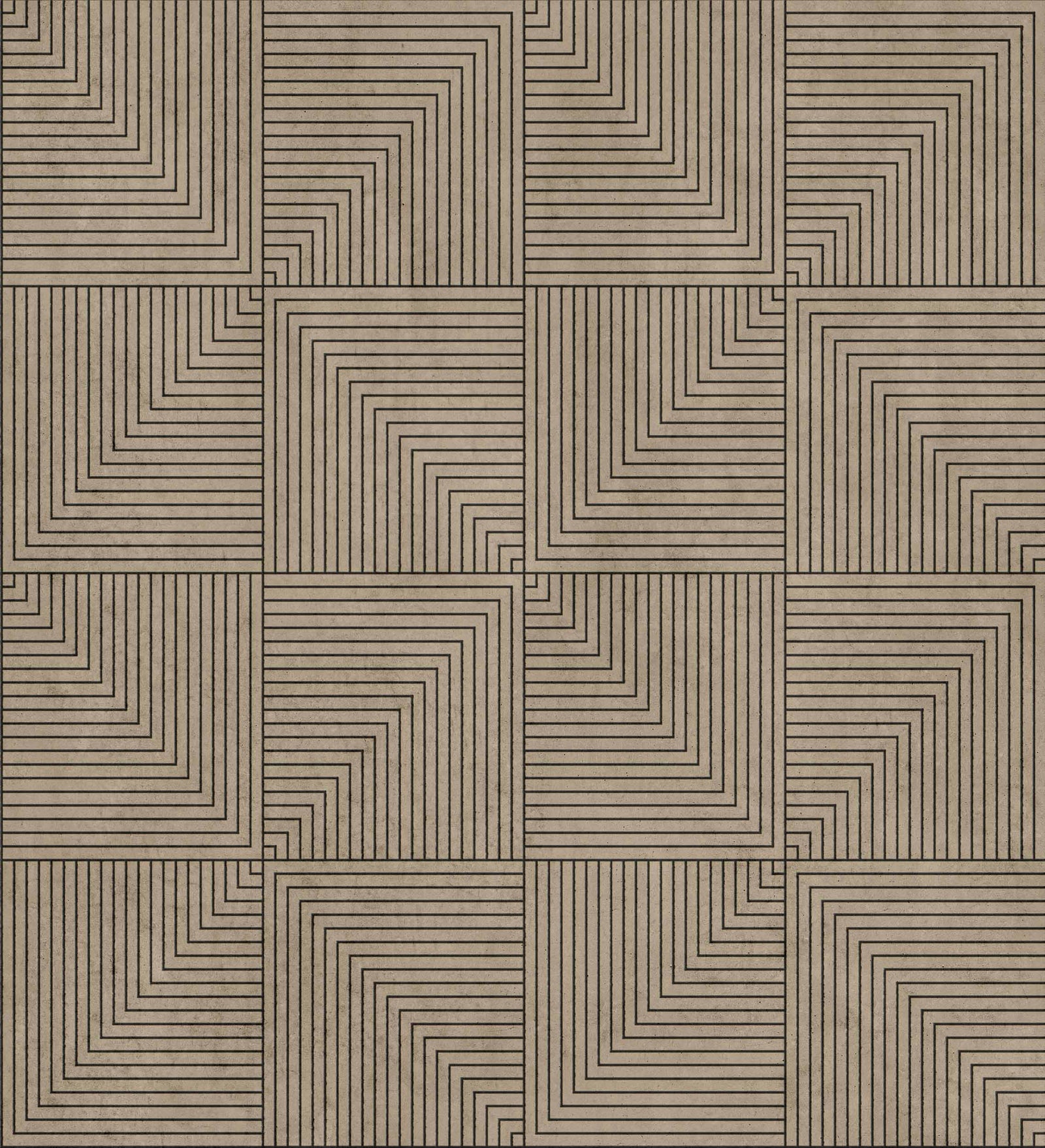 Coordonné's Tetragonal Mole is een behang met geometrische inspiratie in bruine tinten uit de Lattice Geometrics collectie. Het patroon bestaat uit perfecte rechthoekige prisma's.