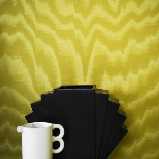 Dedar Amoir Libre behang is uitgevoerd in zijde en heeft een prachtige glans. Dit behang zorgt voor een luxe sfeer in uw interieur. Het behang wordt op ambachtelijke wijze met de hand door de pers gevoerd. Afhankelijk van hoe de ambachtsman de stof door de persen voert, verandert het patroon, dit effect laat zich omschrijven als een moirépatroon.