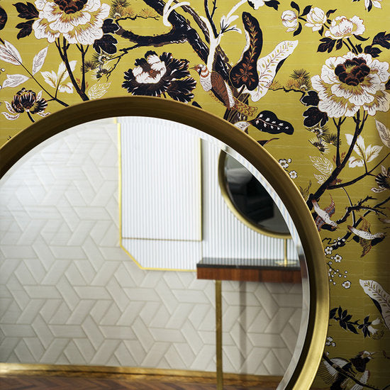 Silkbird behang uit de Lacca behangcollectie is een prachtig paneelbehang en geeft direct een groots effect aan de ruimte.