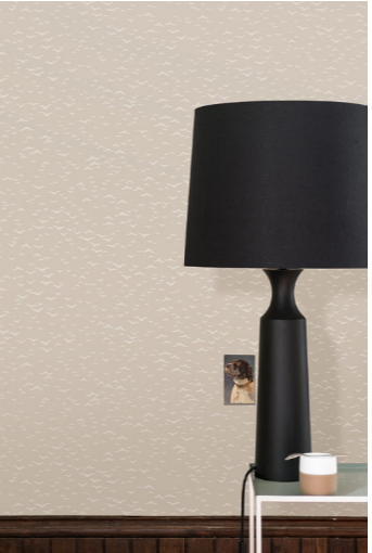 Farrow and Ball Yukutori behang toont een delicaat ontwerp geïnspireerd op de silhouetten van vliegende vogels. Het is gemaakt van een Japanse pen- en inkttekening. De zachte contouren van de vogels die over het papier zweven, creëren een subtiel patrooneffect.