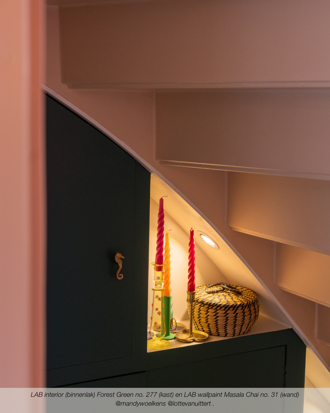3. Wil je extra bescherming? Breng dan LAB wandcoating transparant aan over LAB wallpaint. Ideaal voor keukens, speelkamers of trapopgangen.