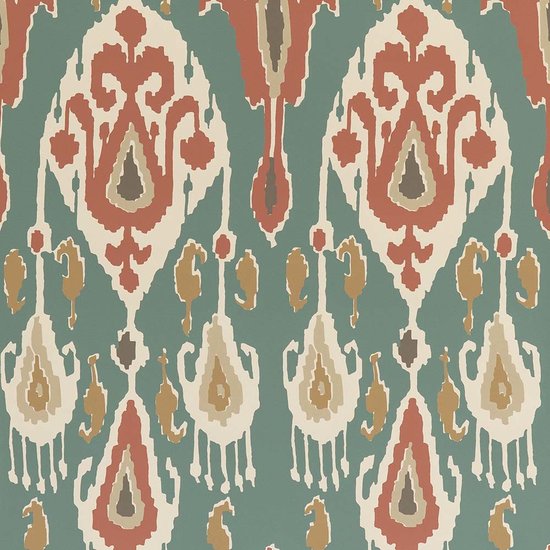 GP & J Baker Ikat Bokhara Behang toont een gewaagd ikat patroon. In de 19e eeuw stonden de Silk Road-woestijnoases van Bokhara, Samarkand en Kashgar bekend om hun fijne zijden ikats. Dit ontwerp is afkomstig uit het archief, de originele versie van dit ontwerp komt uit 1906. Als aanvulling op de gewaagde patronen van het ikat-ontwerp, bevat het Bokhara behangpalet ook de zachtere tinten van lichtroze en zand om een ??andere dimensie toe te voegen. Verkrijgbaar in 6 verschillende kleuren.