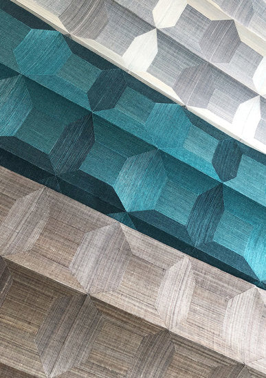 Greenland Shape Spirit wallcovering A non-woven wallcovering that combines two tropical materials; sisal and abaca. The geometrical pattern gives a 3D effect to your walls, adding a dynamic depth to your space.