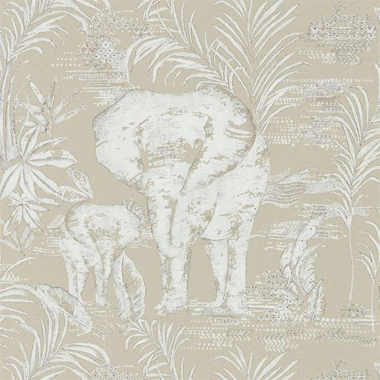 Kinabalu Harlequin behang uit de Zapara behang collectie is voorzien van een gedurfd dessin, namelijk een print met olifanten. Een eigentijdse toile met olifanten gecamoufleerd tegen een achtergrond van bladeren. Het ontwerp wordt geaccentueerd door een neutrale achtergrond met subtiele glans.Het Kinabalu behang is verkrijgbaar in twee kleuren. Kom naar onze behangwinkel en kies samen met een van onze interieurstylisten de juiste kleur uit, passend bij uw persoonlijke wensen en interieur.