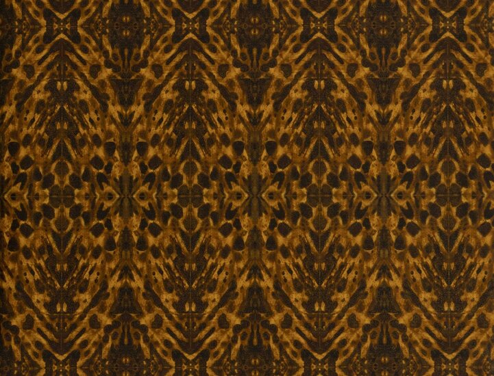 Tony Duquette loved tortoiseshell and one of his prized possessions was an albino tortoiseshell which always had pride of place in all of Duquette’s houses. Traveling with him as he seasonally moved in what he called ‘royal progress’ from Beverly Hills and Malibu to San Francisco and back again. Tony’s love of nature and all of its patterns and colors, which he called “natural baroque”, is the inspiration for this Jim Thompson Tortoiseshell wallpaper. Printed in a design that resembles bookmatched inlay, it is finished with a lacquer-like gloss surface, in a palette that ranges from pale bone to deep cognac and emerald shades.